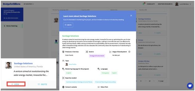 Step 4: Click on "View" to access all relevant information about the entrepreneur and the project