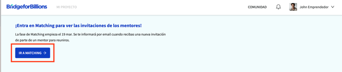 Para iniciar debes ir a la plataforma y haz clic en "Ir a matching".